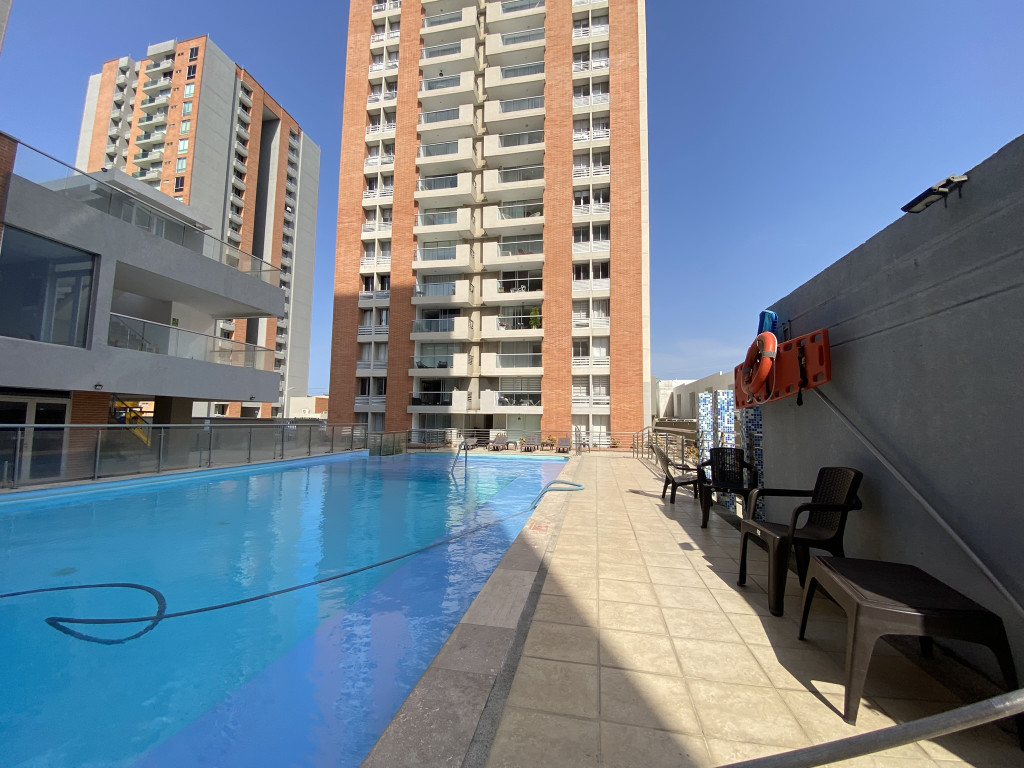 Apartamento en arriendo ubicado en el barrio Villa campestre, en un edificio con vigilancia privada las 24 Horas y zonas sociales de entretenimiento, piscina, canchas deportivas, zona infantil, gimnasio, el edificio cuenta con 19 pisos, el apartamento se encuentra ubicado en el piso 4 lado sombra, con un área aproximada de 98mt2, distribuidos en 3 habitaciones, 2 baños, sala-comedor, cocina integral, zona de labores y 1 parqueadero cubierto, buena distribución en sus áreas con buenos y modernos acabados, es fresco y acogedor, su entorno es tranquilo, residencial con cómodas vías de acceso, sobre el sector puede encontrar droguerías cercanas, centro comercial villa campestre y carulla.